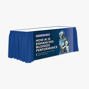 Don't cover your table – accessorize it with a custom shirred table skirt. Crafted to wrap around the sides of a table, leaving the top exposed, table skirts extend from the tabletop to the floor, discretely covering any items stored underneath. Featuring a shirred style, with fabric gathered for added volume and dimension, shirring is a sewing technique that enhances table settings with elegance and sophistication, making it popular for formal events, banquets, and upscale functions. Made from 6 oz. 100% Polyester Poplin and finished with a sewn edge, skirts are popular for their durability, ease of cleaning and ability to customize the front panel with vibrant, long-lasting designs through dye sublimation printing. Velcro strips included along the top back-side of the skirt, to easily attached to included clips.Qty